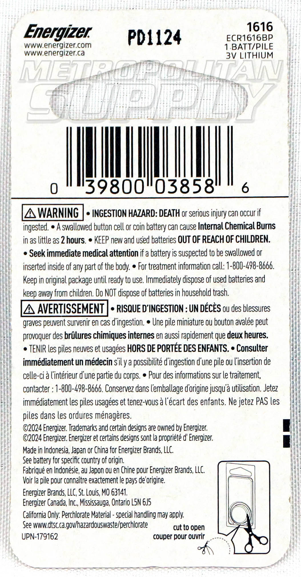 1616 Energizer Keyless Remote Battery (6/pk) Application Info: Energizer Keyless Remote Battery (6/pk) 72 per case